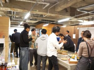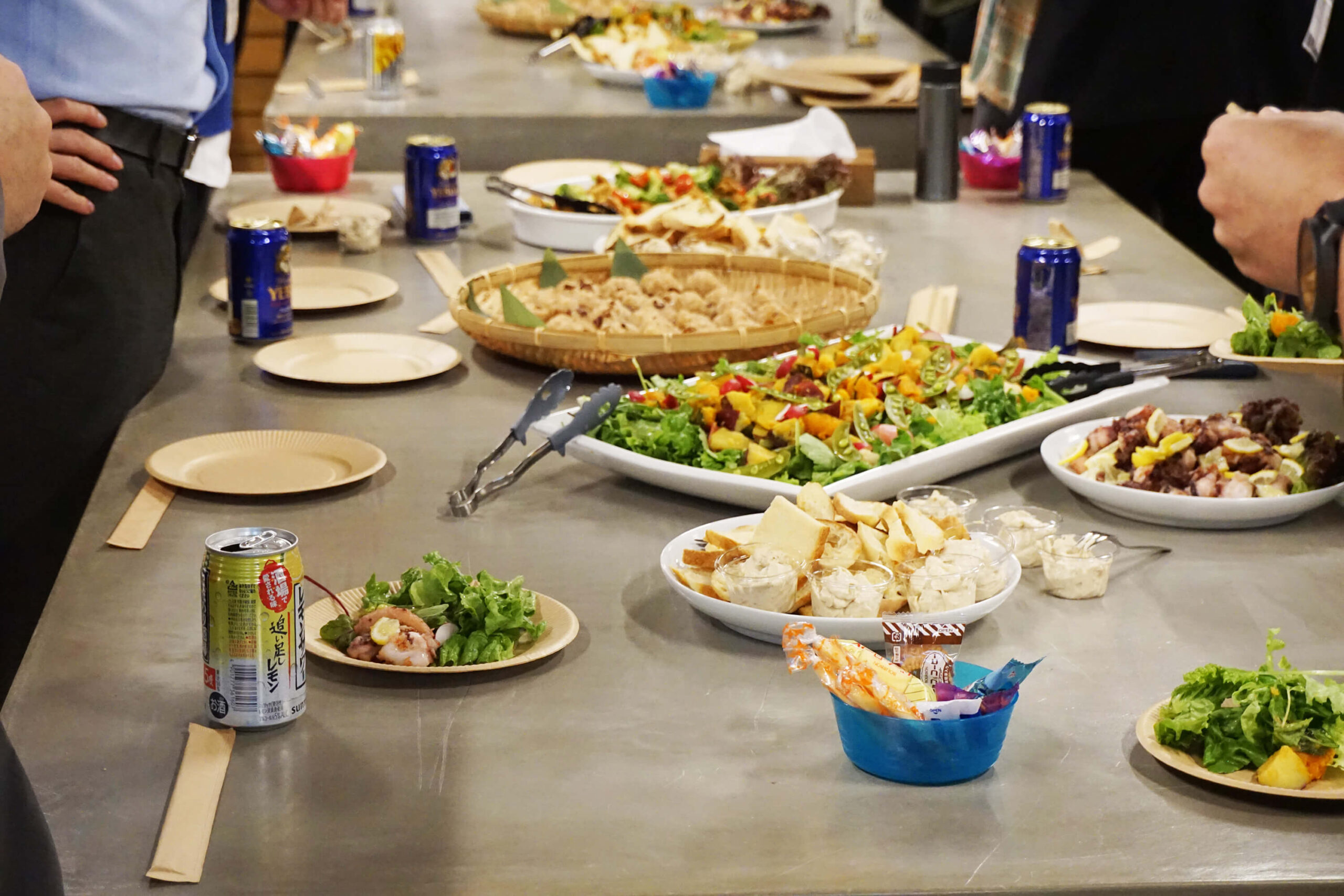 簡単な自己紹介のあとはお待ちかねの料理を楽しみながら、会話の輪も広がりました。