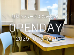 シェア型複合施設TNERでは、10月15日(水)に無料でフリーデスクをご利用いただける「OPEN DAY」を開催いたします!
