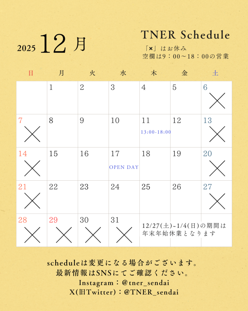 【12月】営業スケジュールのお知らせ